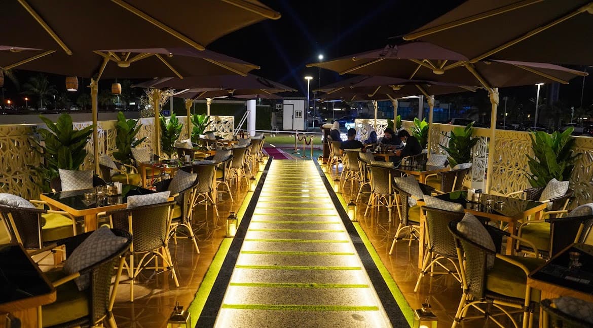 مطعم ومقهى دورين وجلسة خارجية مطلة على البحر