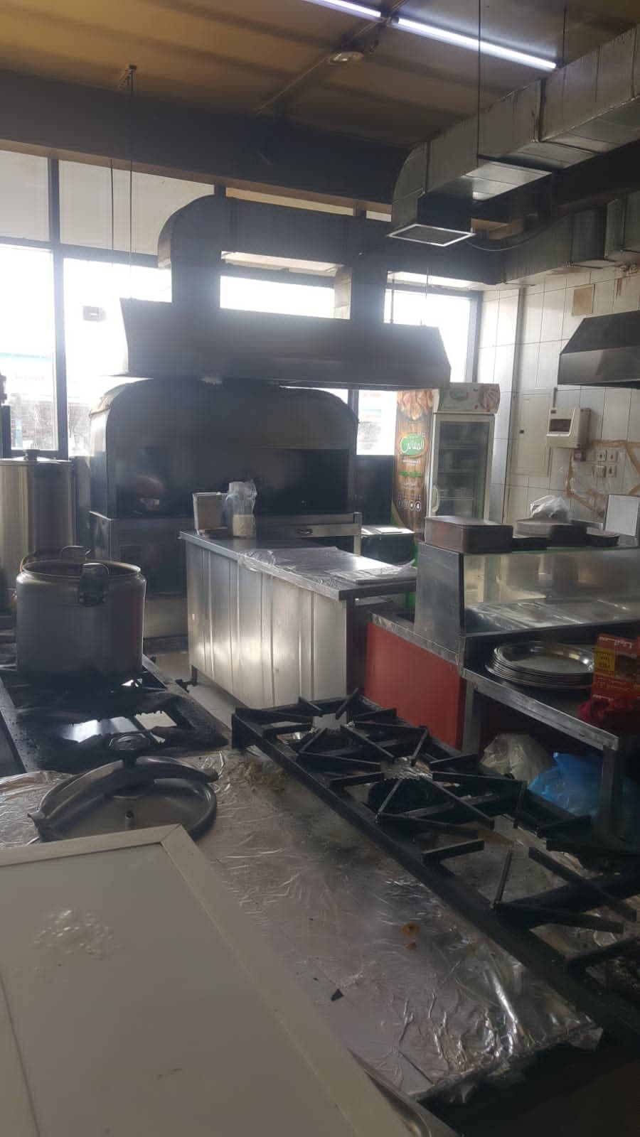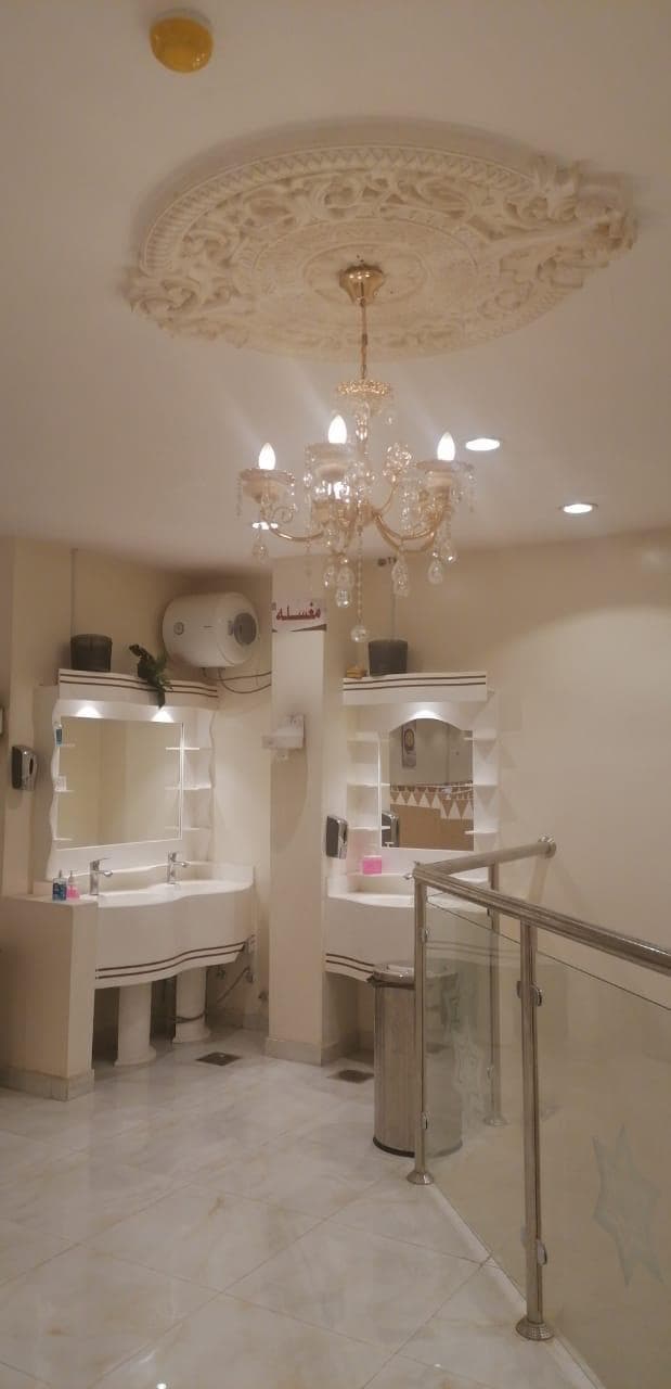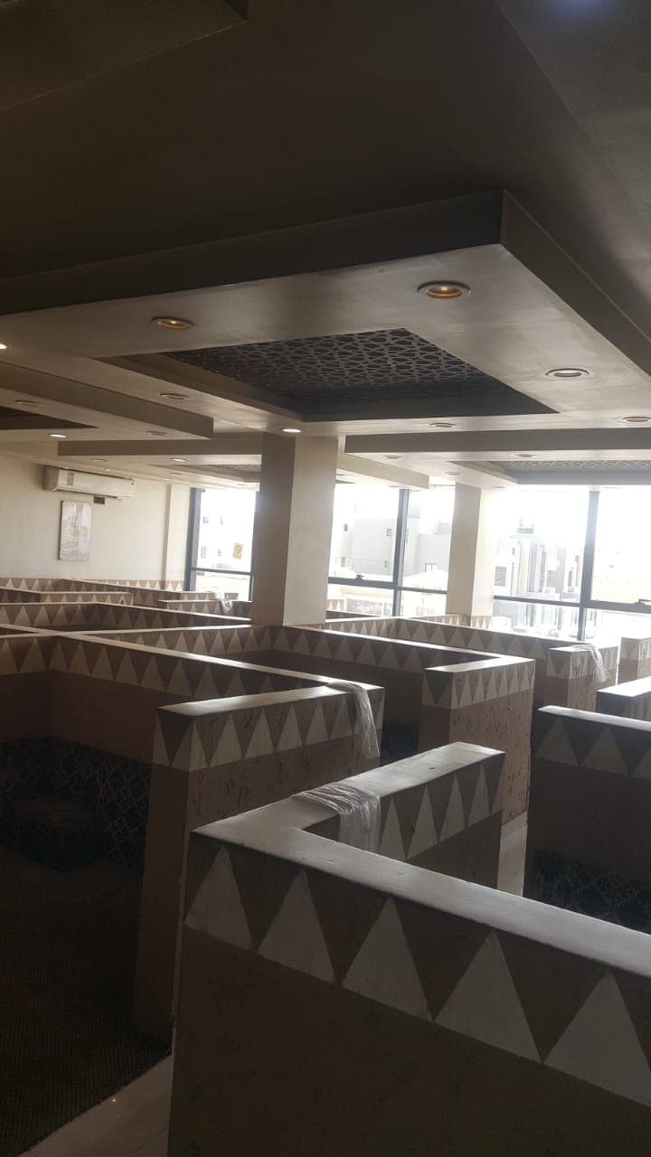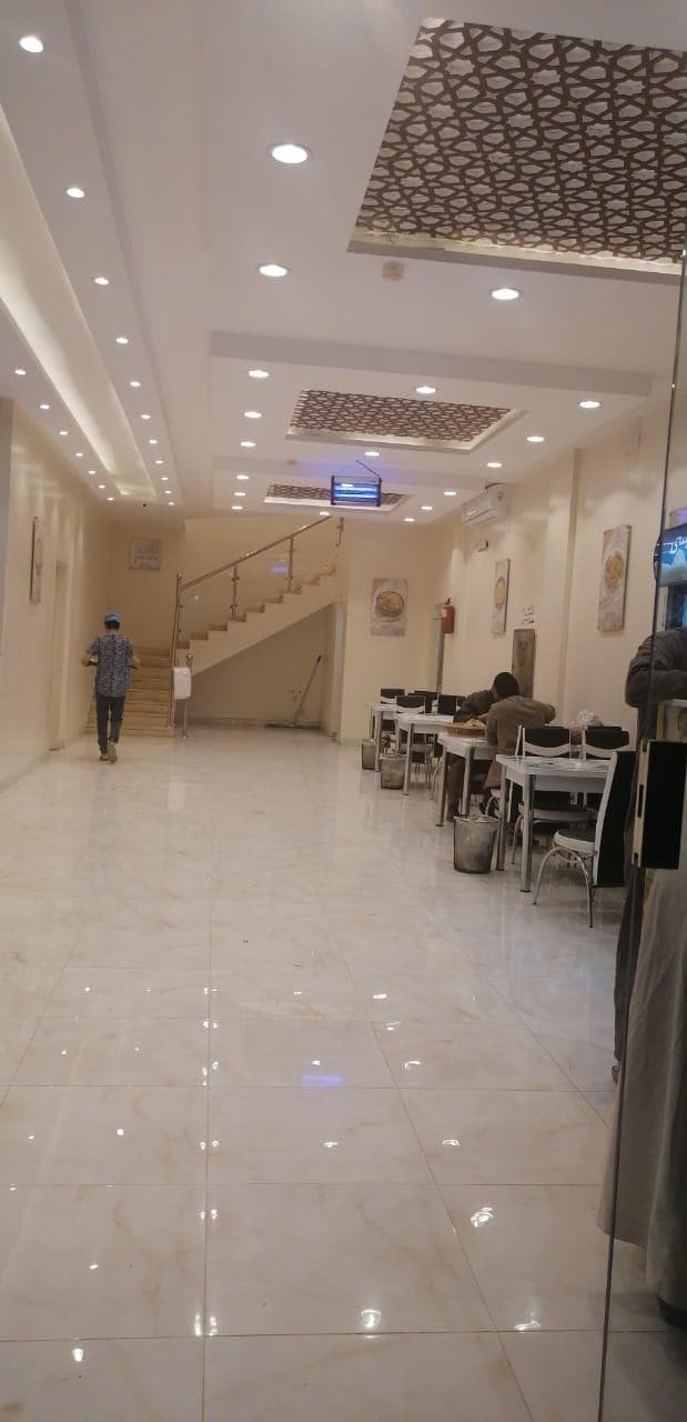 المطعم دورين ميزان + سطح فيه سكن عماله خاص للمطعم عدد 4 غرف + صاله + مطبخ صغير فيه (10) عمالة المساحه (210)م الواجهه جنوبيه مساحتها ٧.٥ متر عرض الشارع (36) م دورات المياه في المطعم ١ دورات المياه في السكن ٢