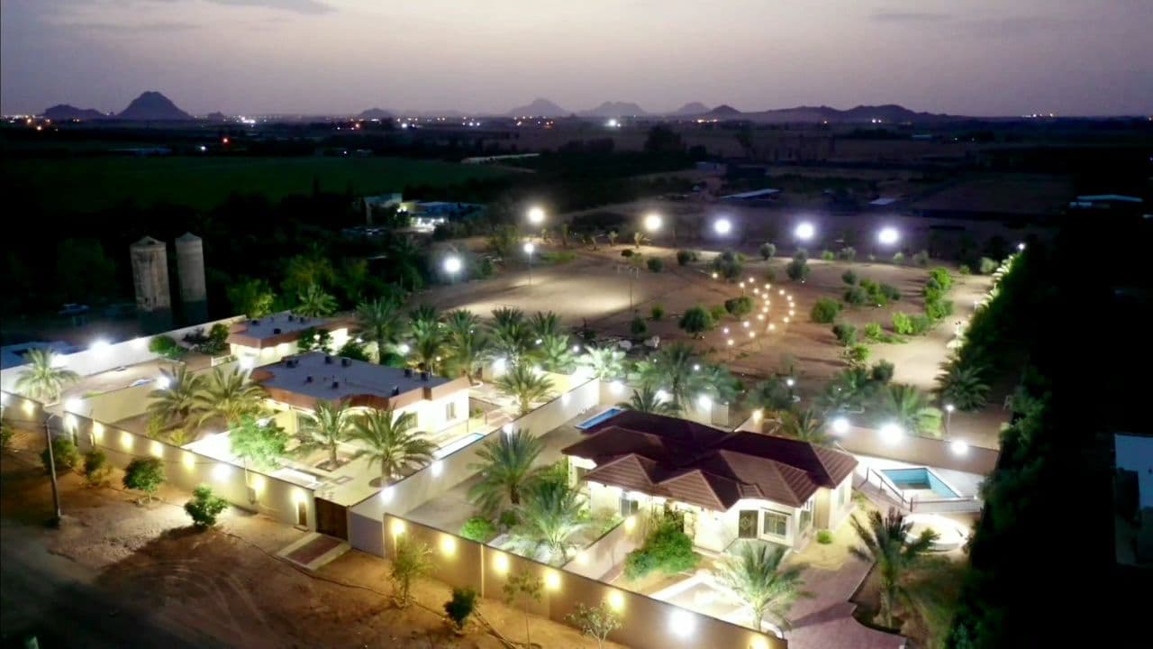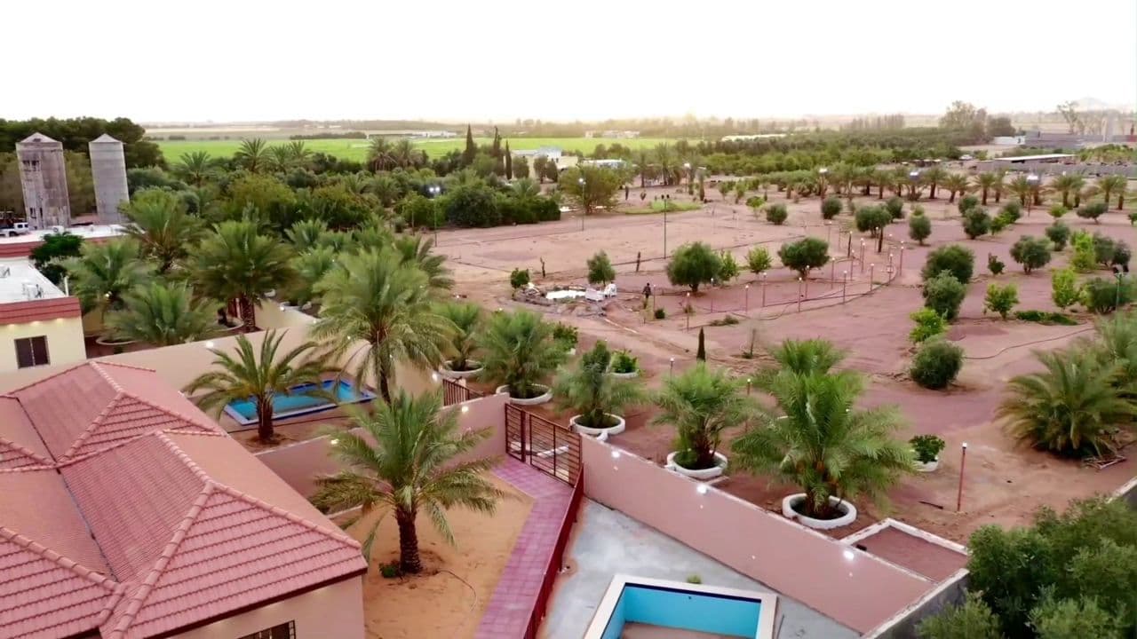 مزرعة مساحتها 50000متر مربع ، فيها 5شاليهات فخمة مساحة الشاليه الواحد 600متر مربع(حديقة، مسبح، 3غرف نوم،دورتين مياه،صالة ،مطبخ ) كل شاليه يفتح على الشارع وعلى المزرعة . الاف الأشجار ، طيور ، بحيرات ، فيلا دور ونصف، خزانين مبرومين ، 8عدادات كهرب ، مفتوحة ايام الويكند للزيارات . فيها مهرجانات للطاووس والحمضيات والزعفران ...الخ . للبيع او المشاركة او الأستثمار .